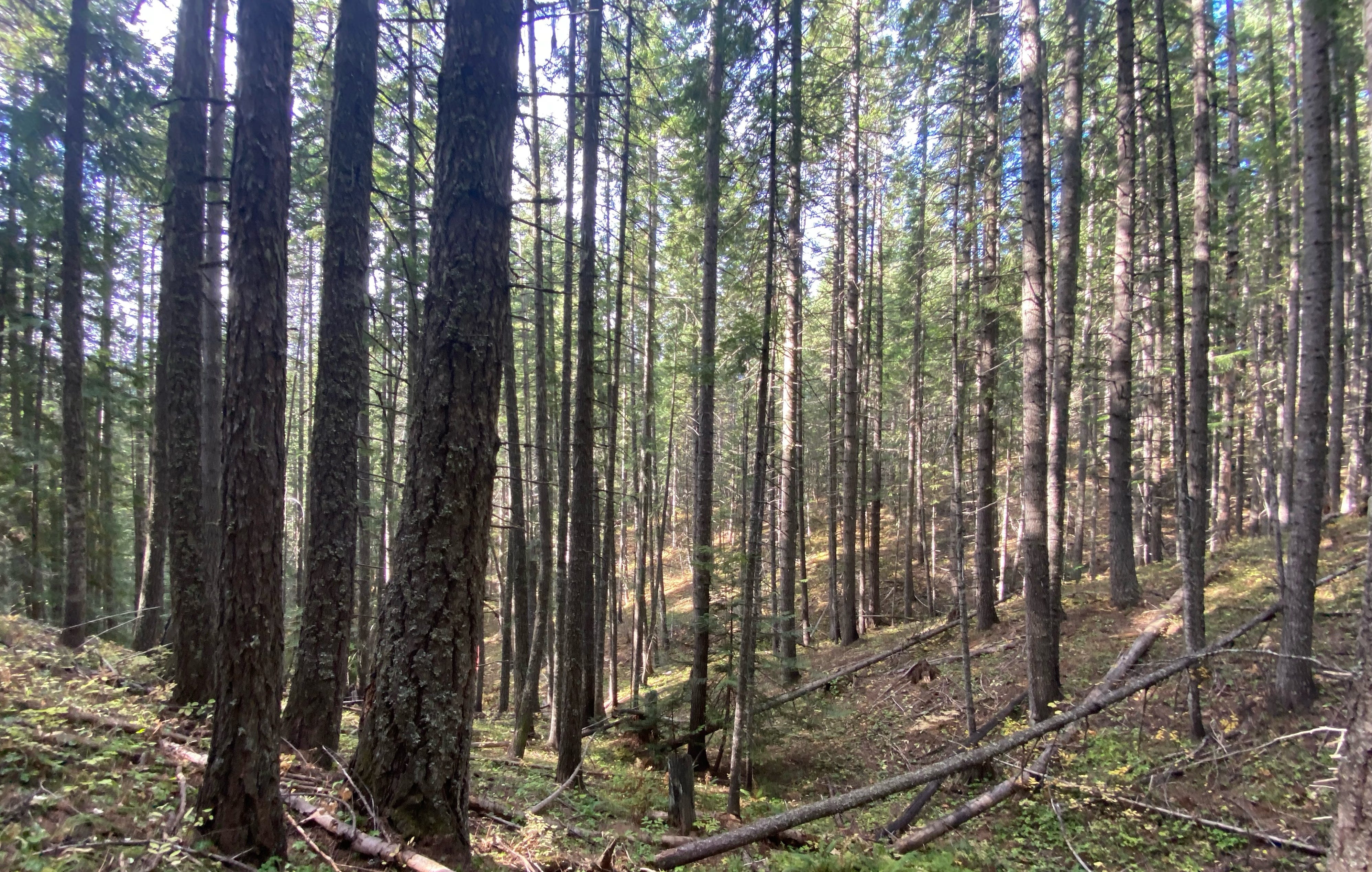 The lower branches were gone; the trees sought the sun. It was an empty space down below the canopy. These were second growth trees, now maybe fifty years old, logged back in the day. They looked to be doing fine, growing well.